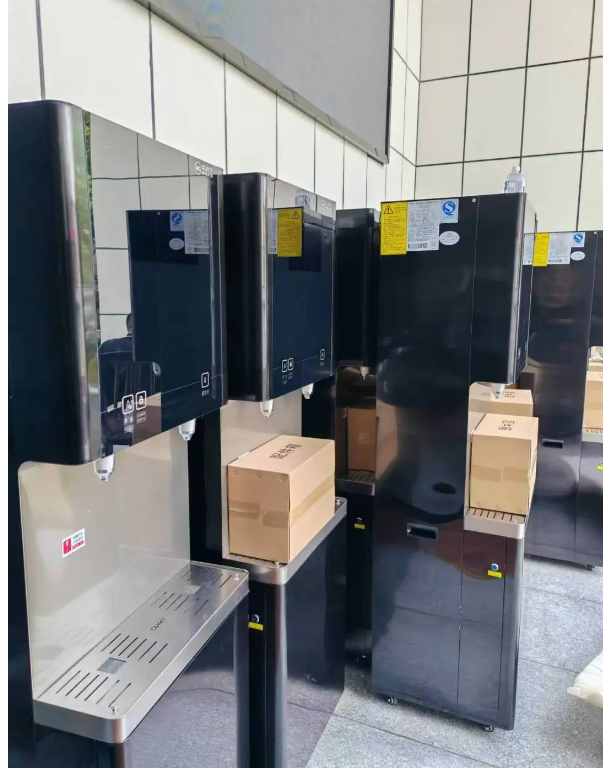 此次項目采購21臺步進式商務(wù)直飲機,采用五級的過濾(聚丙烯PP或PP棉+顆粒活性炭+壓縮炭棒+反滲透+口感調(diào)節(jié)炭)并備配內(nèi)置RO400,五層過濾,層層凈化,現(xiàn)取現(xiàn)飲,安心直飲。觸摸按鈕出水,一開一直飲,熱水出水可遙控調(diào)節(jié)溫度35-100℃可調(diào),滿足不同用戶的不同飲水需求。