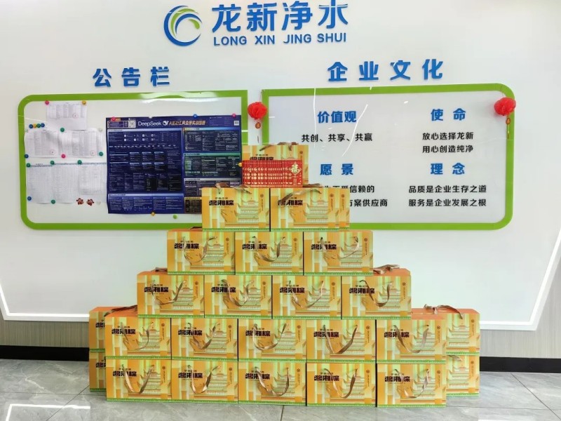 在2025年端午佳節來臨之際,湖南龍新凈水科技有限公司開展"凈水相伴·安康相隨"主題福利活動,公司行政部將精心準備的端午禮盒送至每位員工工位,內含羅森尼娜定制粽子、咸鴨蛋禮盒及公司家屬紅包,當一份份禮品送到員工手中時,大家的臉上洋溢著喜悅的笑容。