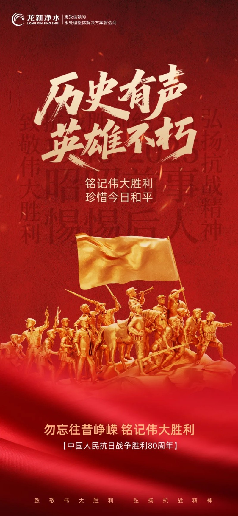 2025年9月3日,天安門廣場的禮炮聲再次震徹云霄。當湖南龍新凈水科技有限公司全體員工整齊的在會議室巨幕前見證三軍儀仗隊踏著《義勇軍進行曲》的節奏正步走來時,終于明白了老輩們總說:'一寸山河一寸血'。